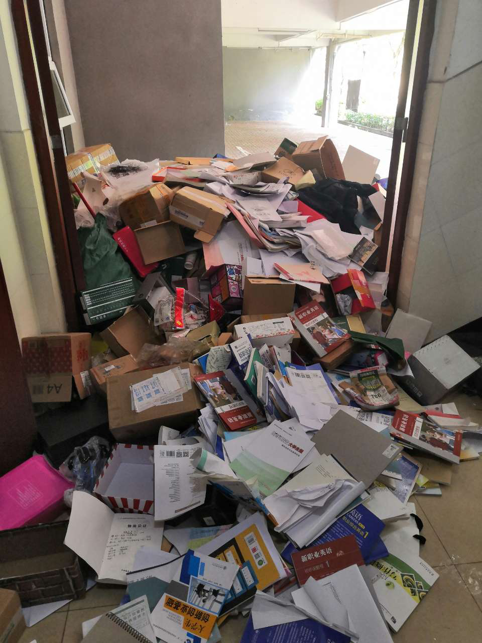 1.1-3栋、4-6栋学生宿舍楼道内有饮料瓶、衣物、棉絮等垃圾堆放,存在火灾隐患。
