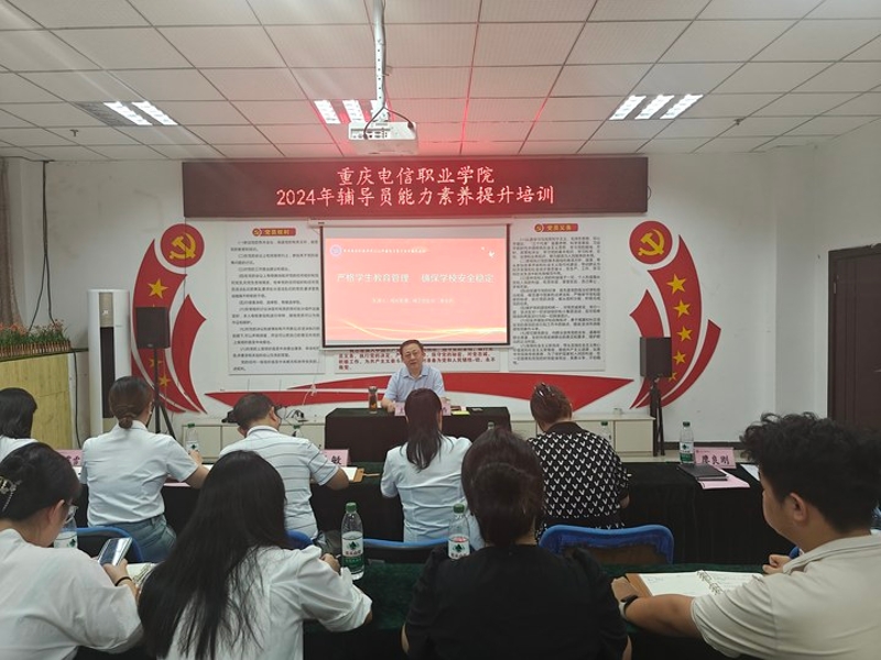 2024 年 9 月 29 日,在图书馆A106开展了重庆电信职业学院 2024 年辅导员能力素质培训。本次旨在提高辅导员业务能力,强化安全意识,校长助理兼保卫处处长周华西针对安全提出了至关重要的“九个必须”,为学校安全工作指明了方向。