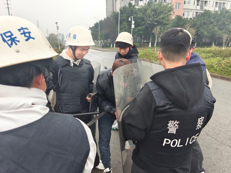 接到报警后,通桥派出所民警迅速赶到现场,与学院保卫人员密切配合,形成强大的反恐合力。民警们运用专业的反恐战术和技能,手持盾牌、钢叉等器械,对“恐怖分子”进行围堵、控制和抓捕。在双方的协同作战下,“恐怖分子”很快被成功制服,演练取得圆满成功。