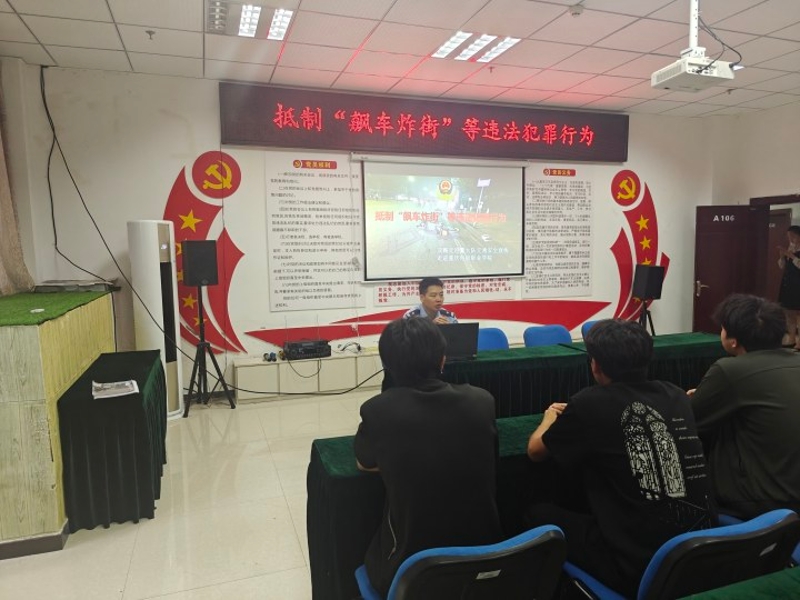2025年6月6日下午,重庆电信职业学院保卫处为加强校园交通安全管理,营造安全有序的校园环境,特别邀请双桥经开区交巡警大队教导员王贞奎来校开展抵制“飙车炸街”等违法犯罪行为的专题讲座。此次讲座旨在提升学生的交通安全意识,杜绝校园内“飙车炸街”现象。
