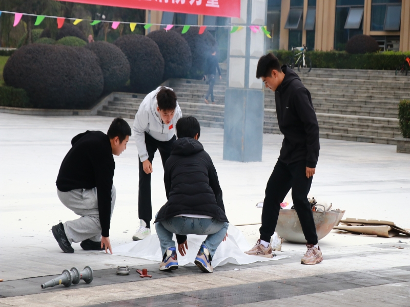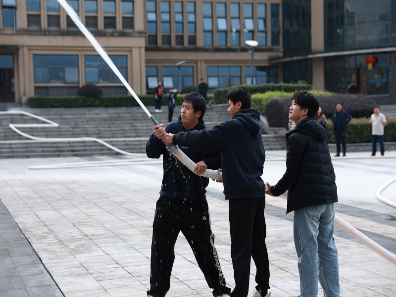 实操体验环节成为活动亮点。在保卫处同志们的指导下,师生们分组参与消防器材操作,亲手体验灭火器“一提、二拔、三握、四压”的规范流程,学习消防水带的快速连接与喷射技巧,通过亲手操作灭火垫覆盖初期火源,直观感受消防器材的使用要领。
